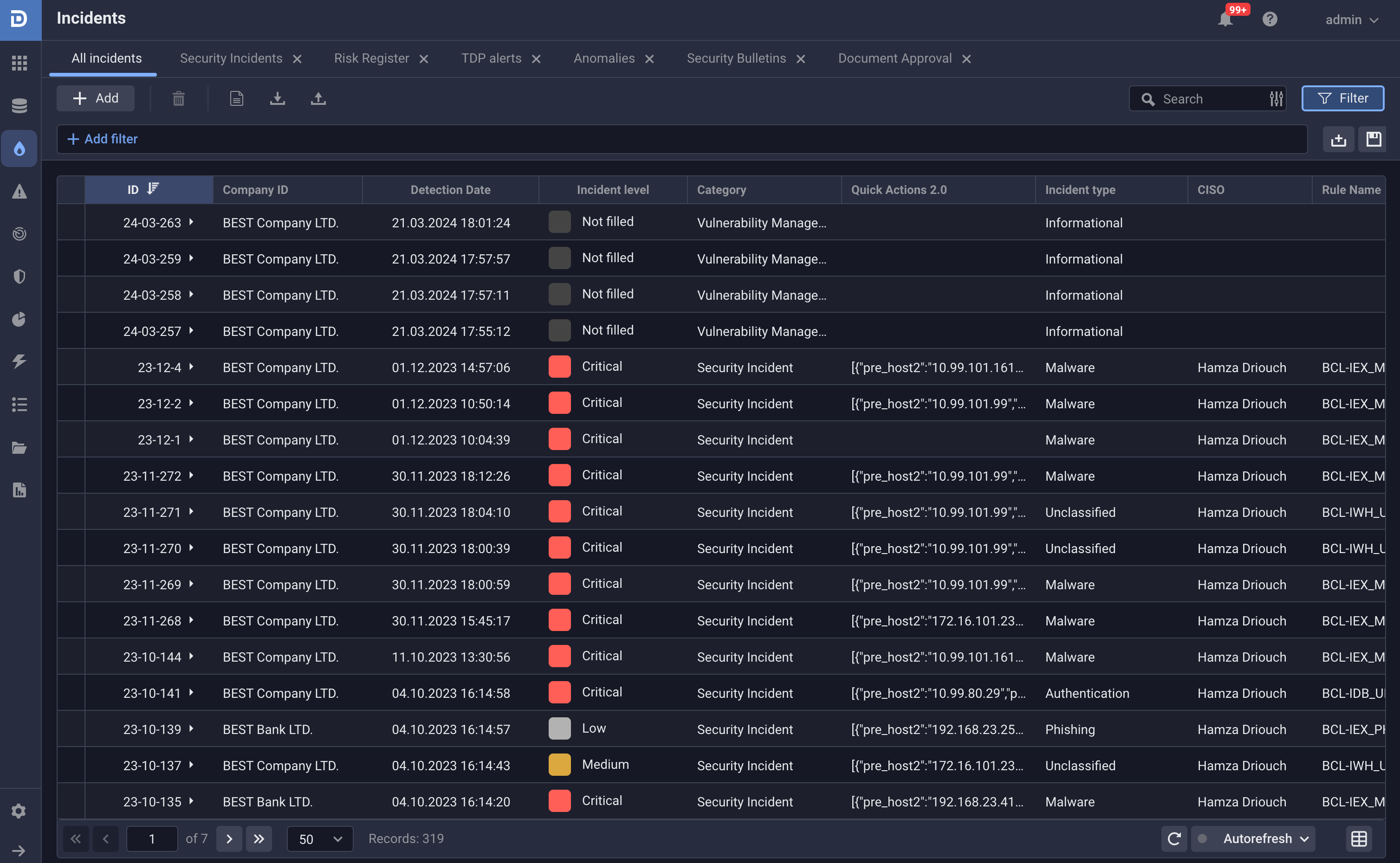 - flexible rule settings allowing to control access to incident data and automated assignment of the responsible personnel based on predefined criteria.