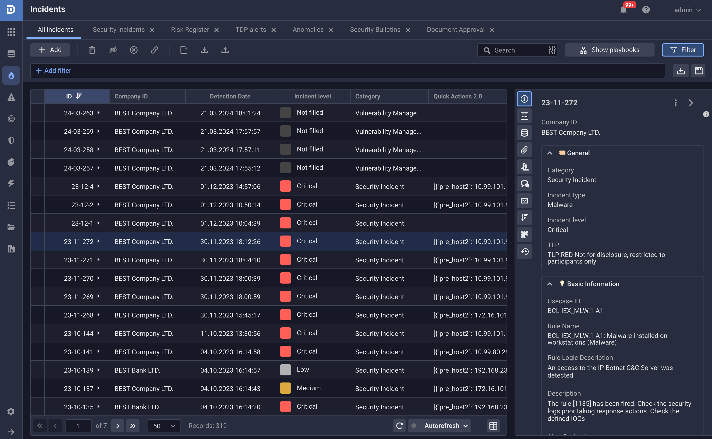 The software is fully customizable. It contains ready-to-use lists of possible actions, scripts, incident types, user roles, etc. which can be easility adapted to the company’s specific workflows and environment.
