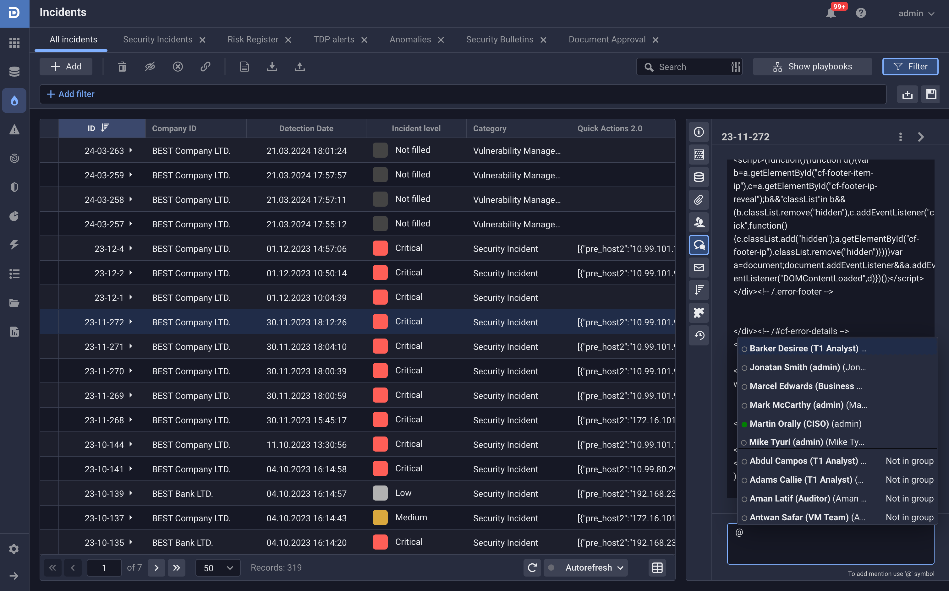 - A common workspace for members of the SOC team working on the same case which ensures easy access to all collected evidence and data.