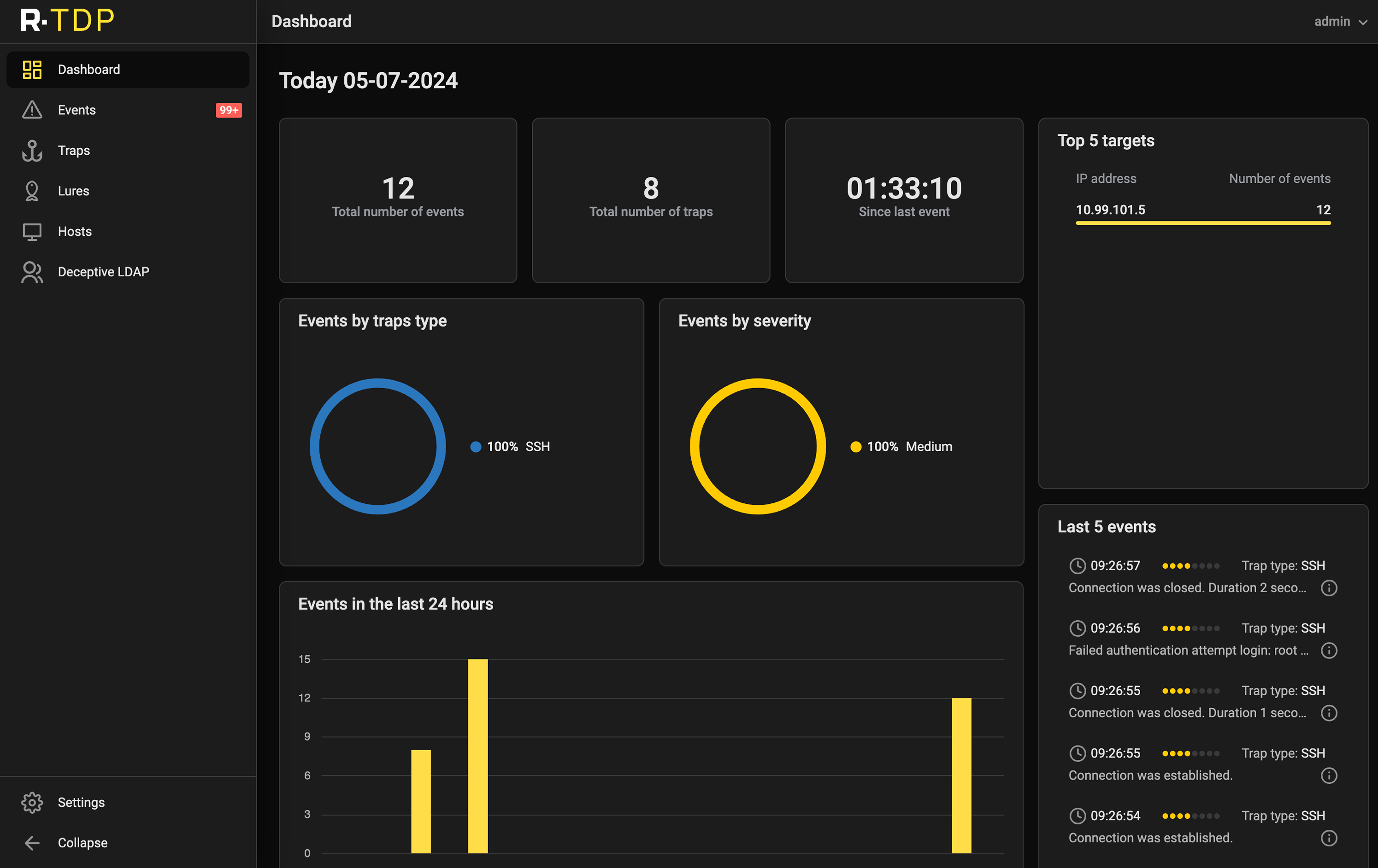 Defensys TDP collects events when logging interaction with lures and traps, processes them, and sends a detection alert to the cybersecurity expert.