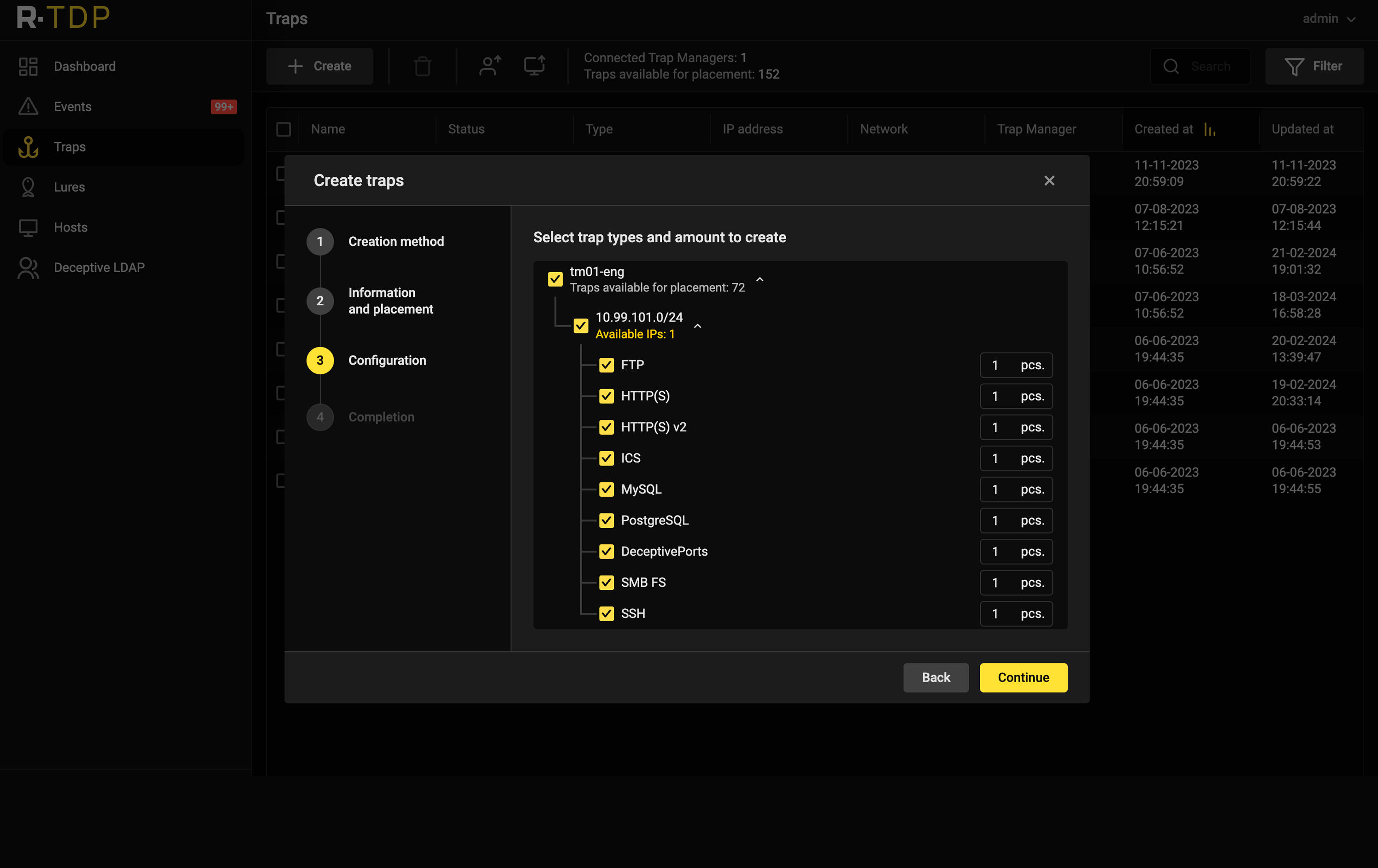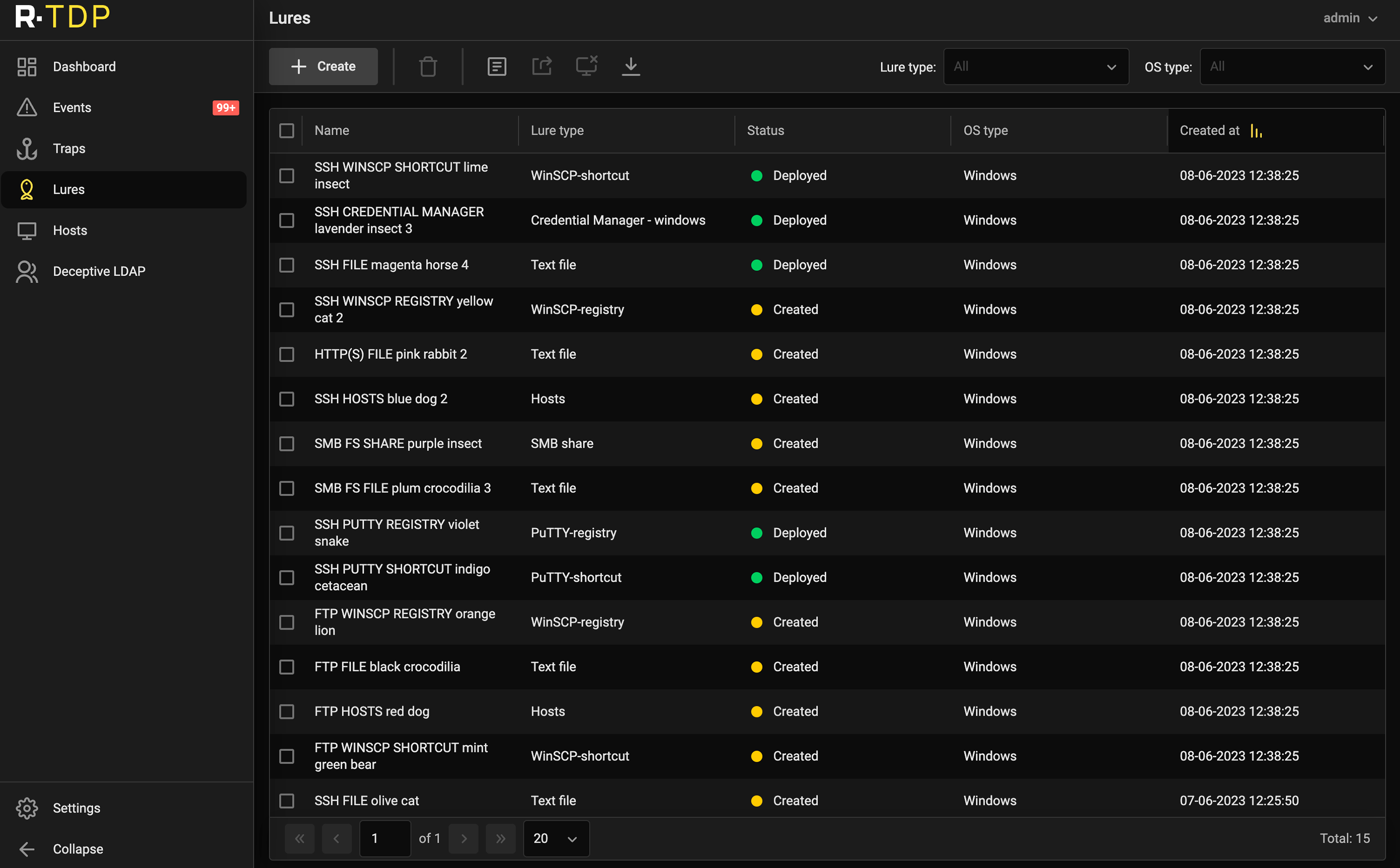 - Flexible traps and lures configuration to better adapt and respond to changing company’s real infrastructure dynamics